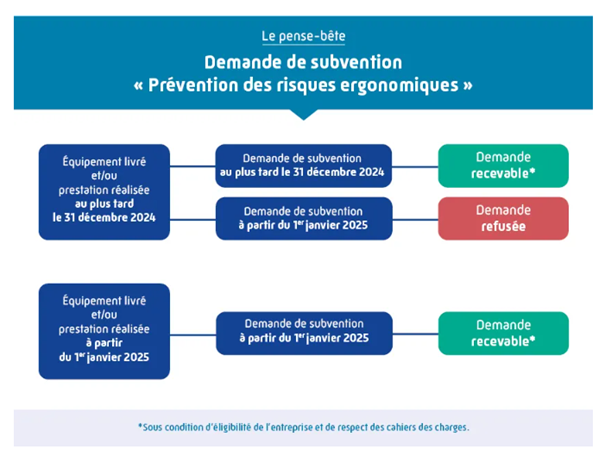 Un cahier des charges précis concernant le matériel et les équipements optionnels subventionnés a été établi par l’Assurance Malade. Ces équipements doivent, évidemment, être conformes aux normes et réglementations en vigueur. Les salariés utilisateurs doivent être, en outre, informés et formés à leur utilisation en sécurité.