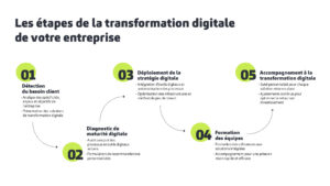 Pour évaluer votre niveau actuel de maturité digitale et déterminer le plan d’action à initier pour votre transformation, l’établissement d’un audit de maturité digitale s’impose. A réaliser de préférence avec l’accompagnement d’un cabinet spécialisé en diagnostic digital, cet audit permet d’identifier les forces, les faiblesses et les opportunités à saisir pour optimiser la performance de votre entreprise.