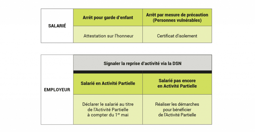 Dans tous les cas, l’employeur devra procéder à une demande d’activité partielle pour son salarié dans les 30 jours suivant le 1er mai, pour une prise d’effet au 1er mai.