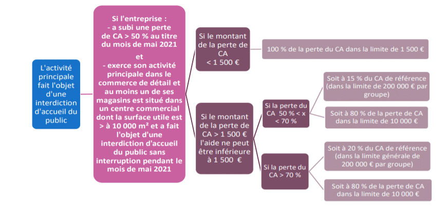 Le décret supprime le caractère ininterrompu de la fermeture au cours du mois de mai pour les entreprises exerçant leur activité principale dans le commerce de détail et ayant au moins un de leurs magasins de vente situés dans un centre commercial comportant un ou plusieurs bâtiments, dont la surface commerciale utile est supérieure ou égale à 10 000 m2, en raison de leur réouverture le 19 mai 2021.