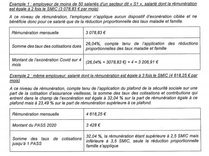 Sont détaillées les rémunérations à retenir et les cotisations exonérées, notamment en cas d’application de taux spécifiques. Des exemples de calcul sont proposés :