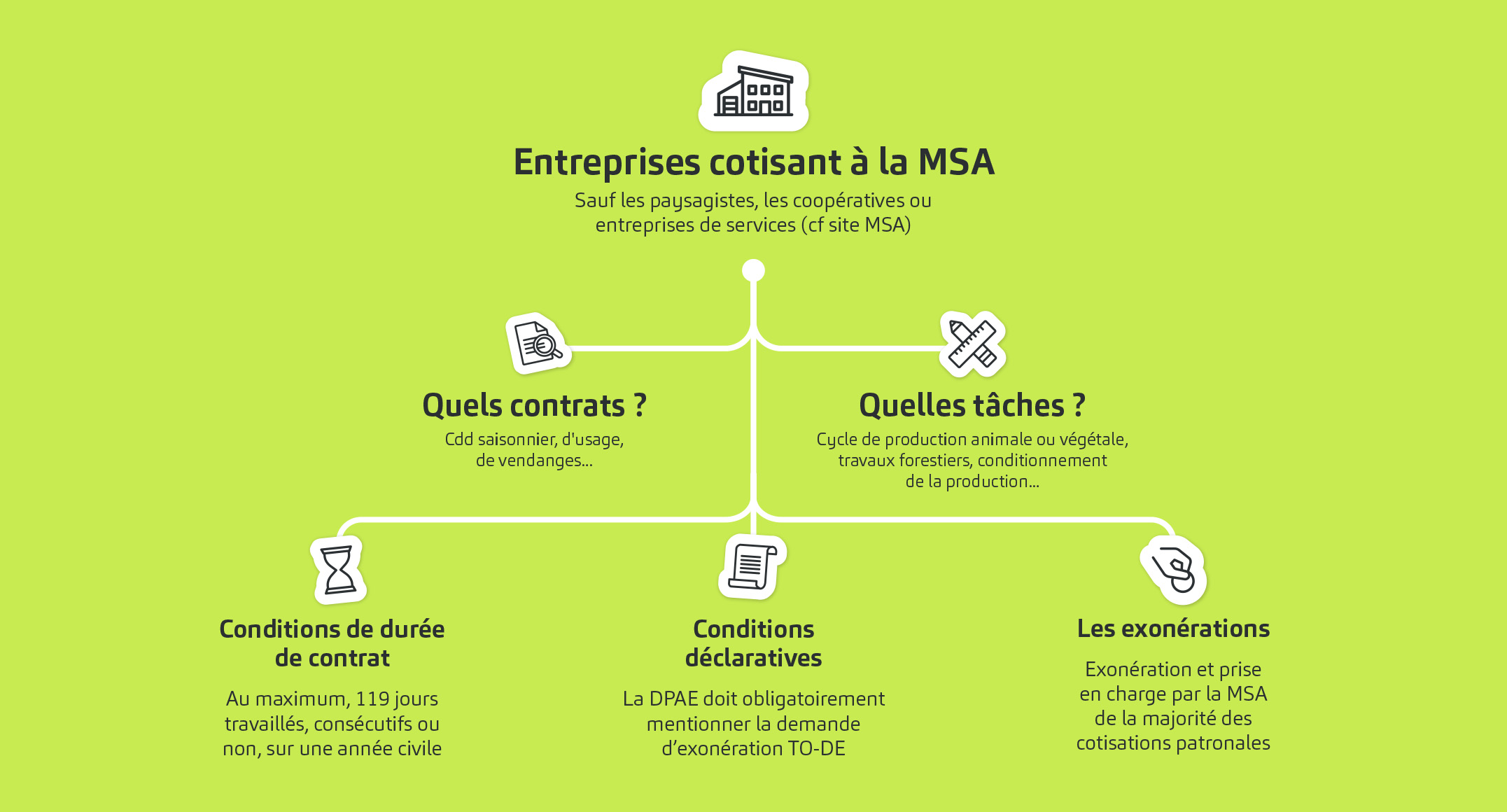 Le dispositif TO-DE (pour Travailleur Occasionnel – Demandeur d’Emploi) est une exonération de cotisations patronales spécifiquement dédiée au secteur agricole, visant à soutenir l’emploi saisonnier et alléger le coût du travail temporaire.
