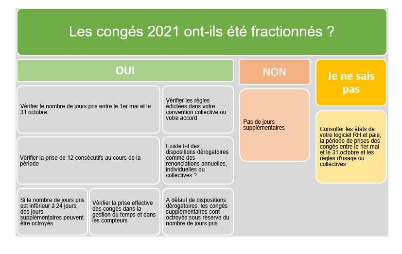 La loi prévoit des jours supplémentaires de congés dans certaines situations et notamment en cas de fractionnement de la prise des congés. Cependant, ces jours de congés supplémentaires ne sont pas automatiques dans le traitement de la paie. Leur décompte est toutefois à lancer à compter du 1er novembre de chaque année.