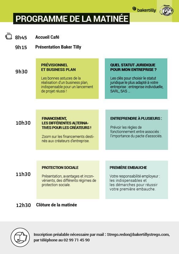 Pour vous guider et vous accompagner dans votre projet, le bureau Baker Tilly de Redon organise une matinée d’ateliers et d’échanges dédiés, ouverte à tous ► Vendredi 8 avril, de 9h à 12h30.