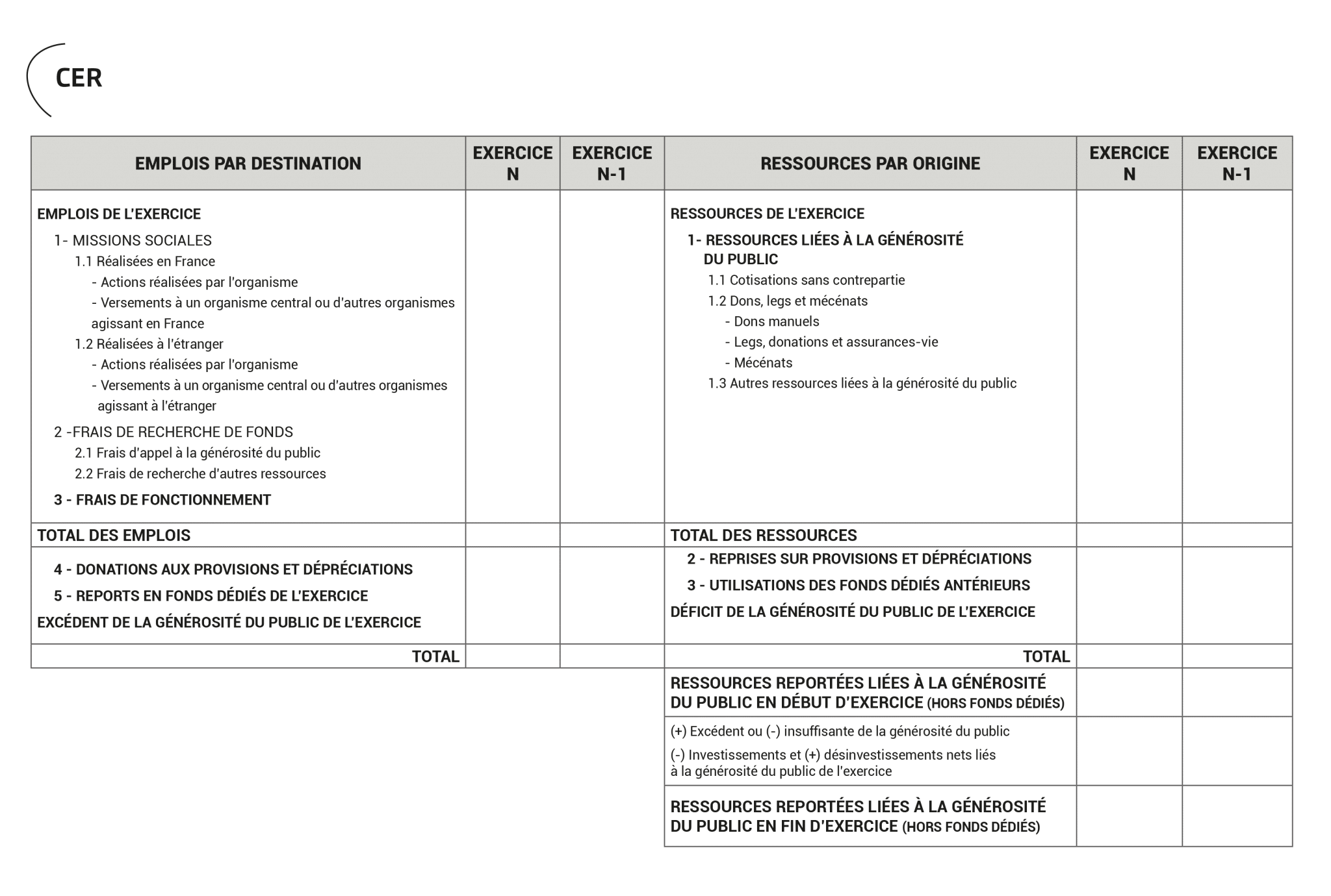 - Le compte d’emploi annuel des ressources collectées auprès du public (CER)