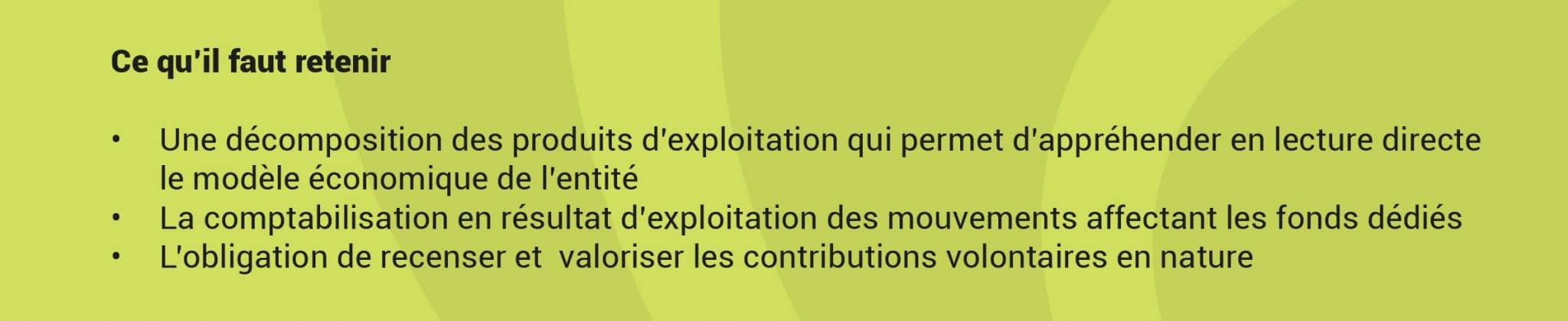 [RAPPEL] : Le compte de résultat présente les charges et les produits engagés (uniquement) au titre de l’exercice écoulé. Dans le nouveau règlement, les produits sont distingués, en fonction des différentes sources de financement dont ils sont issus. Cette présentation a pour but d’identifier le modèle économique des entités et de renforcer la transparence financière.