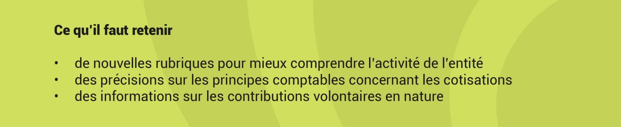 Signalons également des informations complémentaires à mentionner sur les cotisations et sur les contributions volontaires en nature.